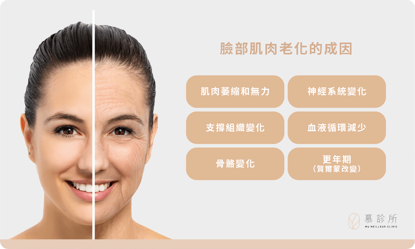 隨著年齡增長,面部肌膚逐漸出現鬆弛與老化現象,原本緊緻飽滿的輪廓開始失去立體感。面部肌肉與深層支撐結構的流失更是造成臉部老化的關鍵原因之一,當肌底支撐力減弱,即使皮膚中仍有膠原蛋白,也難以維持原有的緊緻線條,最終導致面部輪廓下垂、鬆弛,整體外觀顯得疲態且不再清晰。