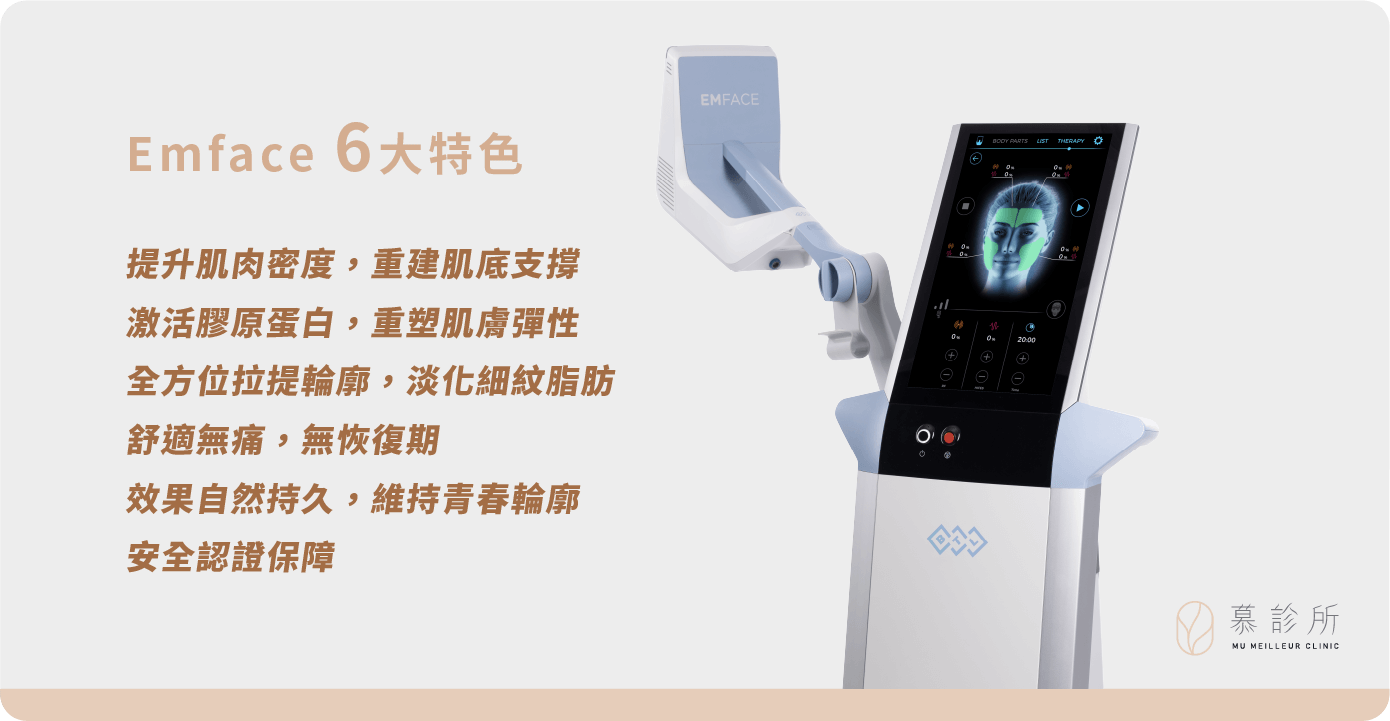 三、全方位拉提輪廓,淡化細紋脂肪:EMFACE 同步刺激肌肉與皮膚層,改善鬆弛、細紋與局部脂肪堆積,重塑立體輪廓線條,讓臉型更顯年輕緊緻。