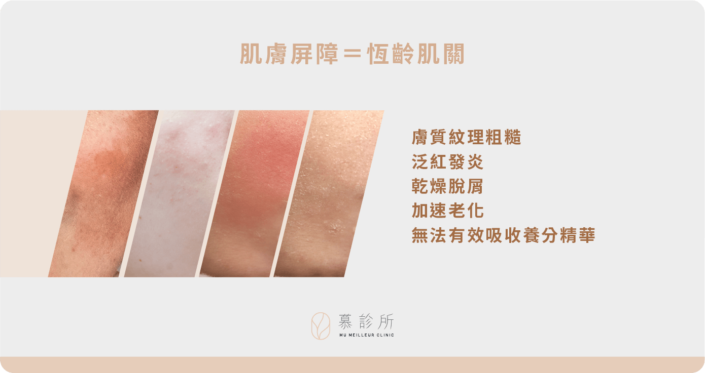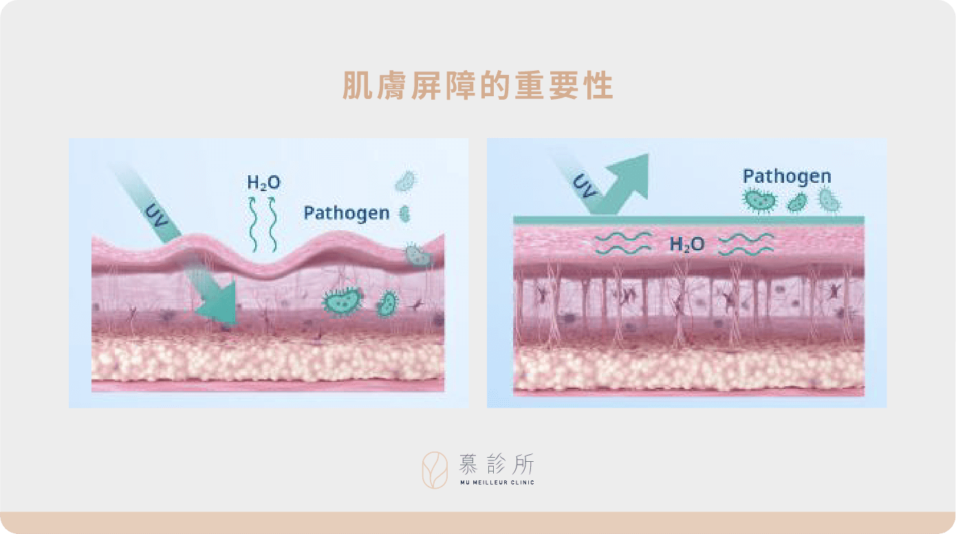 健康的肌膚屏障,保護肌膚不受紫外線、微生物傷害,預防水分流失鈣離子梯度失衡,導致角質層無法成熟分化,皮膚容易受到外在影響出現泛紅、不穩定等狀況。
