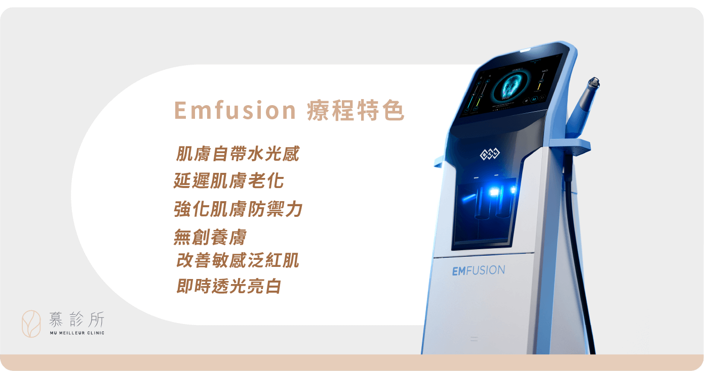 EMFUSION的獨全球首創突破性DynamiQ 水亮澤技術,以高頻震動誘導肌膚共振,令SkinCA++回歸表皮層位置和回復正常濃度,激活表皮肌膚屏障,重拾肌膚正常微生態。強化肌膚防禦力,抵禦細菌污染物等刺激,延緩老化,改善敏感肌,讓肌膚自帶水光感。